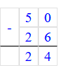 12) 50 – 26 = 24;