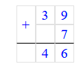 6) 39 + 7 = 46;