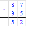 Проверка: 87 - 35 = 52;