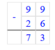 Проверка: 99 - 26 = 73;