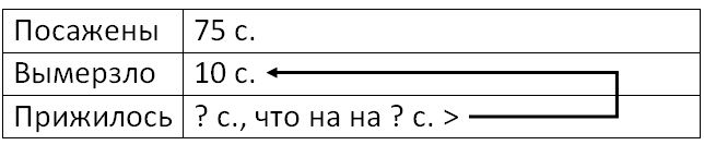 Ответ: 65 саженцев прижилось; на 55 саженцев прижилось больше, чем вымерзло.