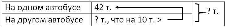 1) 42 + 10 = 52 т. – на другом автобусе