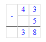 43 – 5 = 38;