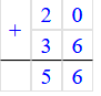 20 + 36 = 56;