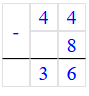 1) 44 – 8 = 36;