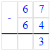 Проверка: 67 – 64 = 3;