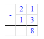 2. Складываю единицы. Сумма чисел 7 и 1 равняется 8. Пишу 8 под единицами.