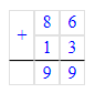 4. Найдем четвёртое недостающее число: 86 + 13 = 99;