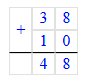 5. 38 + 10 = 48;