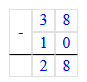 13. 38 – 10 = 28;