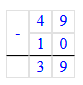 15. 49 – 10 = 39;