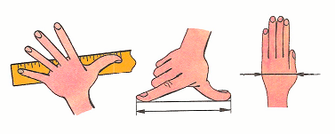 Краткое условие: Если у тебя нет линейки, а нужно хотя бы примерно определить размеры предмета, полезно использовать такие мерки, которые всегда при тебе. Рассмотри рисунки и узнай свои размеры. Запомни их и пользуйся ими для измерения.