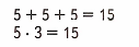 Поэтому 5 + 5 + 5 = 5 • 3 = 15;