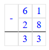 2) 61 - 28 = 33;