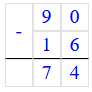 3) 90 - 16 = 74;