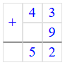43 + 9 = 52.