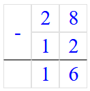 1. 28 - 12 = 16;