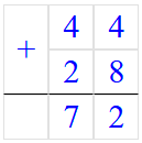 22 + 22 + 28 = (22 + 28) + 22 = 50 + 22 = 72;