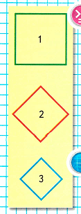 Краткое условие: Измерь стороны каждого квадрата в миллиметрах и узнай его периметр. Решение запиши сначала сложением, а потом умножением.