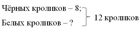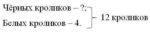 1) 12 - 4 = 8 кр. – количество чёрных кроликов