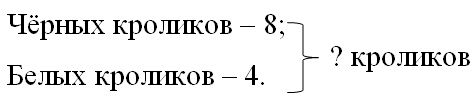 1. У хозяина было 8 чёрных и 4 белых кроликов. Сколько всего кроликов было у хозяина?