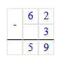 2) 62 - 3 = 59 (л.)