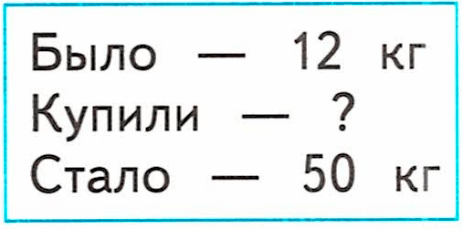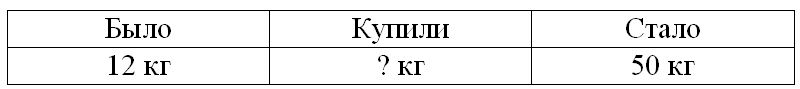 У мамы было 12 кг сахара. Для изготовления варенья она купила ещё сахара, тогда у неё стало 50 кг. Сколько сахара купила мама?