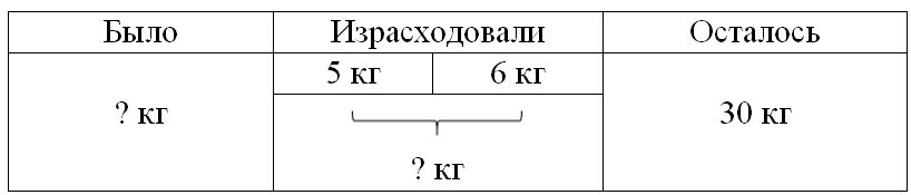 1) 5 + 6 = 11 кг – израсходовали
