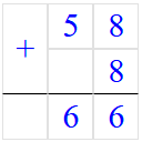 Если k = 58, то k + 8 = 58 + 8 = 66;