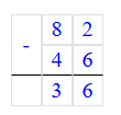 1) 82 - 46 = 36;