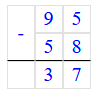 Проверка: 95 - 58 = 37;