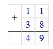 Проверка: 11 + 38 = 49;