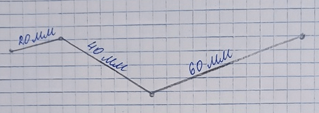 Краткое условие: Начерти ломаную, у которой длина первого звена равна 20 мм, второго — 40 мм, а длина третьего равна сумме длин первого и второго звеньев.