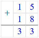 1) 15 + 18 + 2 = 33 + 2 = 35;