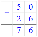 2) 45 + 5 + 26 = 50 + 26 = 76;