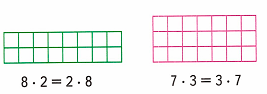 1. В первом случае клетки считали по строкам. В каждой строке по 8 одинаковых квадратов. Всего 2 такие строки. Чтобы узнать общее количество клеток, необходимо найти произведение чисел 8 и 2.