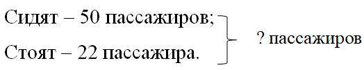 В автобусе 50 пассажиров сидят и 22 пассажира стоят. Сколько всего пассажиров едет в автобусе?