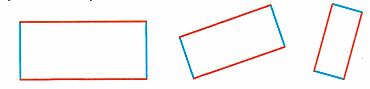 Краткое условие: Одним цветом показаны противоположные стороны прямоугольника. Проверь измерением, что они равны. Вырежи из бумаги в клетку любой прямоугольник и проверь с помощью перегибания, что противоположные стороны прямо-угольника равны.