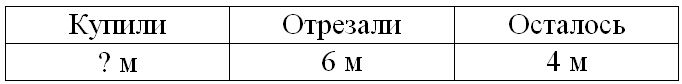 Для пошива платья купили ткань. Когда от куска ткани отрезали 6 м, то осталось 4 м. Сколько метров ткани купили?