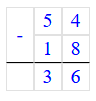 Проверка: 54 - 18 = 36;