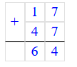 Проверка: 17 + 47 = 64;