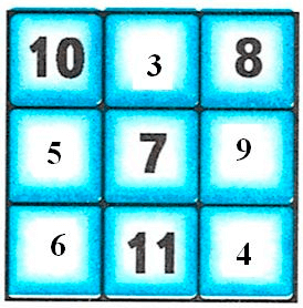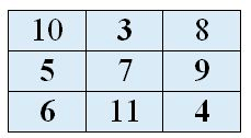 2) В свободных клетках квадрата разместим числа 3, 4, 5, 6, 9 так, чтобы получился магический квадрат:
