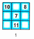 Краткое условие: В свободных клетках квадрата 1 размести ещё числа 3, 4, 5, б, 9 так, чтобы получить магический квадрат.