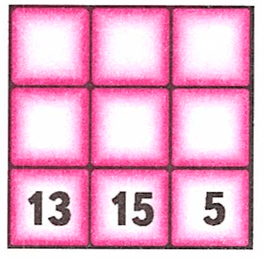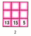 Краткое условие: Оставляя на местах числа 13, 15 и 5 в квадрате 2, расставь в его пустые клетки числа 3, 7, 9, 11, 17, 19 так, чтобы получить магический квадрат.