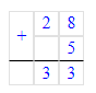 2. Анализируя уже имеющиеся числа в квадрате, допустим, что по диагонали нужно вставить числа 17 и 11, чтобы набрать необходимую сумму: