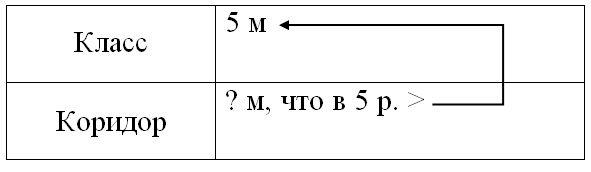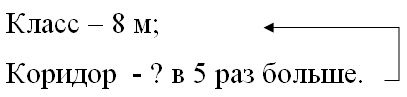 Краткое условие: Длина класса ⎕ м, а длина коридора в 5 раз больше длины класса. Дополни условие и узнай длину коридора.