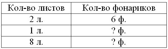 Краткое условие: Из двух листов цветной бумаги можно сделать 6 одинаковых фонариков для украшения ёлки. Сколько таких фонариков можно сделать из восьми таких же листов бумаги?
