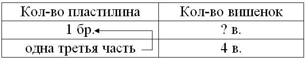 Краткое условие: Из одной третьей части бруска красного пластилина вылепили 4 одинаковые вишенки. Сколько таких вишенок можно вылепить из целого бруска пластилина?