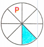Закрашена одна восьмая доля, значит, третья буква слова - р;