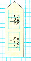 2. Разность чисел 7 и 2 равняется 5, а разность чисел 5 и 1 равняется 4. Значит, на месте десятков в первом слагаемом необходимо писать цифру 4.